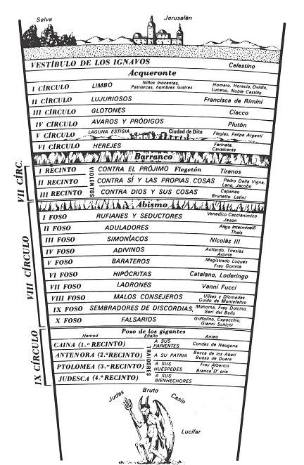 Sinopsis de la estructura que Dante establece para el Infierno