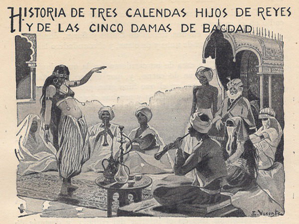 DURANTE el reinado del califa Haroun-al-Raschid, vivÃa en la corte de Bagdad un pobre mandadero, que, a pesar de lo humilde y penoso de su oficio, era hombre de ingenio y de excelente humor. Hallábase cierta mañana en la plaza del mercado esperando que alguna persona le ocupase en algo, cuando vió acercarse a él una joven de talle elegante y esbelto, y cubierta con un velo.