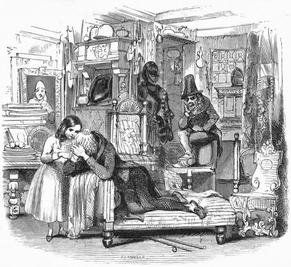 En sus confidencias con la señora Quilp, la niña había descrito vagamente la tristeza y el pesar de sus pensamientos, los nubarrones que se cernían sobre su hogar y proyectaban sombras oscuras en el fuego de la chimenea. Resultaba muy difícil transmitir a una persona no íntimamente familiarizada con su vida una idea adecuada de su tristeza y soledad; el temor, en cierto modo, a comprometer u ofender al anciano, a quien estaba tan tiernamente vinculada, había frenado la efusión de su corazón y no le había permitido hacer más que una tímida alusión a la principal causa de su angustia y desolación.