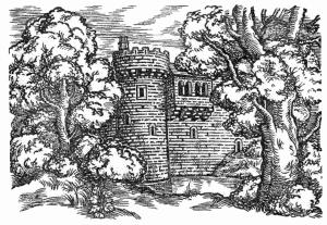 MOAT HOUSE no se hallaba muy lejos del escabroso camino del bosque. Exteriormente, era un macizo rectángulo de piedra roja, flanqueado en cada esquina por una torre redonda, con aspilleras para los arqueros y coronado de almenas. En su interior encerraba un reducido patio. El foso tendrÃa unos cuatro metros de ancho y se hallaba cruzado por un solo puente levadizo. Lo abastecÃa de agua una zanja que iba a parar a una laguna del bosque y que, en toda su extensión, quedaba protegida y vigilada desde las almenas de las dos torres del lado sur. A excepción de uno o dos altos y gruesos árboles que se habÃa permitido quedasen a medio tiro de ballesta de los muros, la casa estaba en buena situación para la defensa.