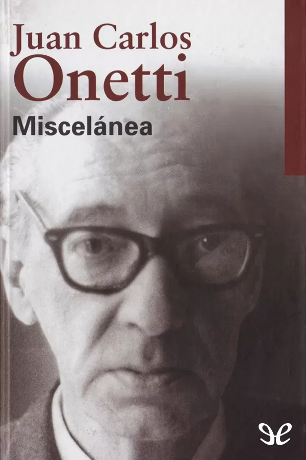 Miscelánea incluye diversos textos no publicados en los restantes tomos de esta colección de Obras Completas de Juan Carlos Onetti que presenta la editorial Galaxia Gutenberg. Entre ellos figuran varios autorretratos: «Mi imagen y yo», «Infancia», «Por culpa de Fantomas», «Onetti por Onetti» y otros. Cuatro prólogos escritos para libros de otros autores. Dos poemas. Varios reportajes.
